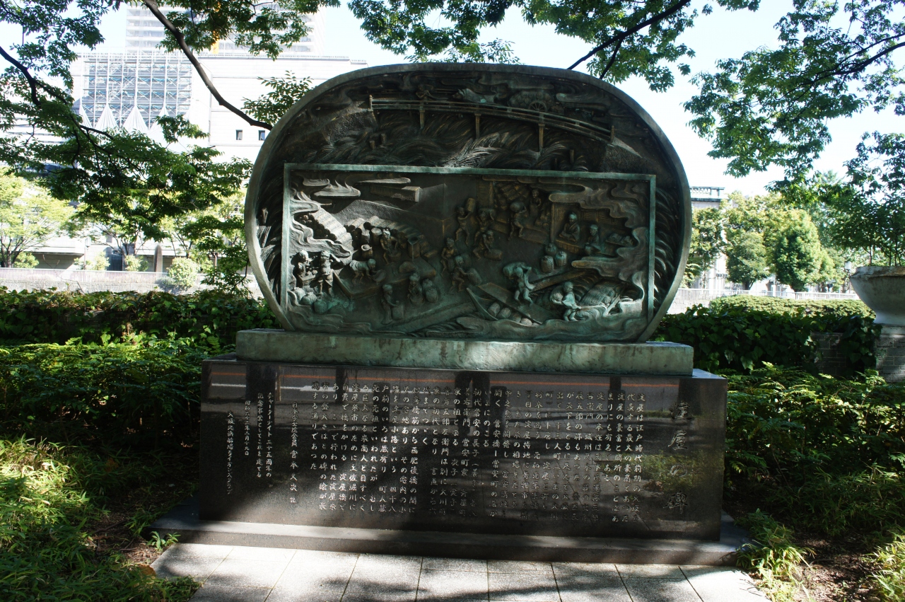 淀屋屋敷跡は、淀屋橋南詰西に石碑があります。豪商淀屋は、この辺りに1万坪の屋敷を構えていたとのこと。淀屋橋の名前は、その淀屋のことです。
