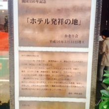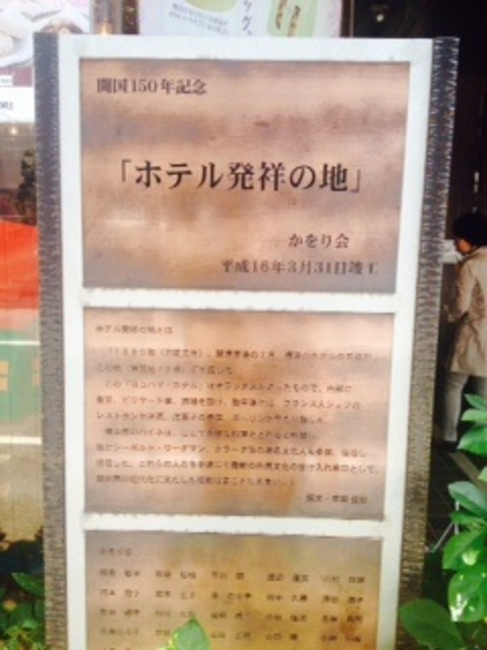 横浜情報文化センターと通りを挟んだ反対側に「かをり」という洋菓子店があり、その店先にプレートがある。開港の2ヶ月後にオランダ人船長が開いたのが始まりで、シーボルトなども宿泊したようだ。ビリヤード台やボーリングなどもできるようなホテルだったらしい。