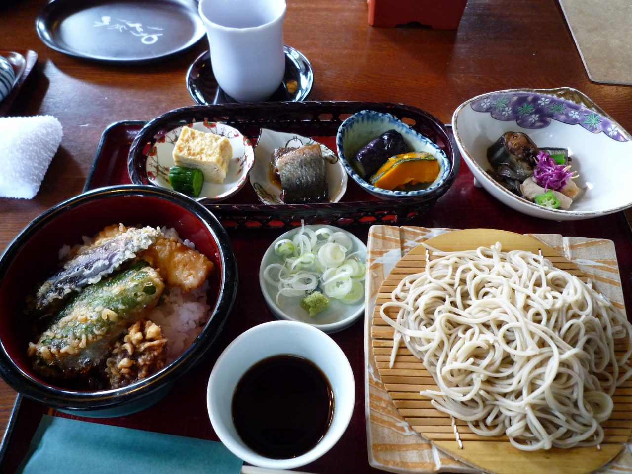 蕎麦と天丼、数種類のおかずと盛りだくさんで1080円だったかな?