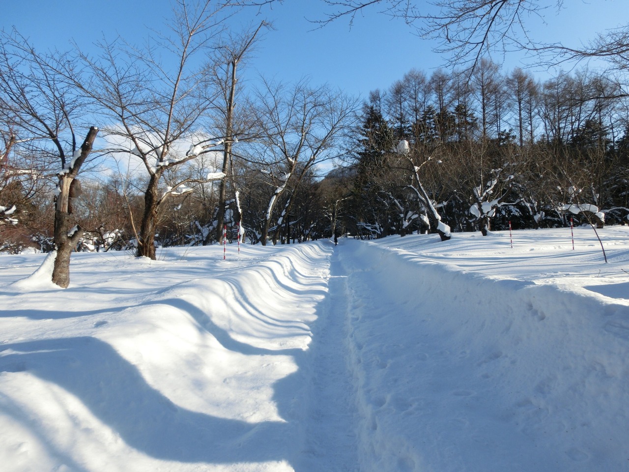 2月の大雪のシーズン、サラサラのスノーパウダーの道なき道を歩いて、キラキラ輝く景色はとても素敵でした。
