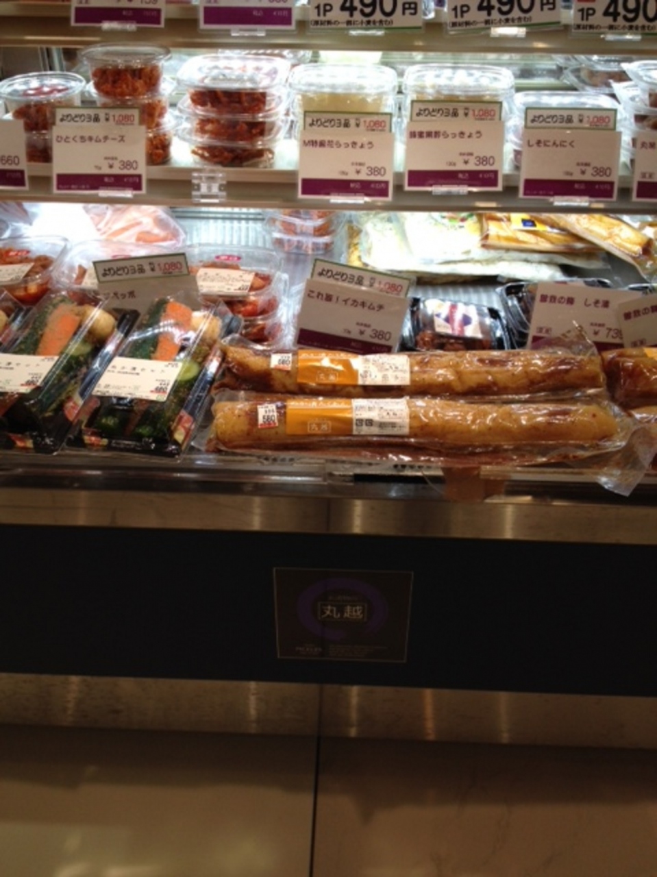 テラスモールの一階にマルシェという食品のお店がいくつか入っているブースがあります。その中のひとつにこの漬物屋の丸越があります。なかなかスーパーでみる漬物と違ってなかなか口にしなそうなお漬物までおいてあるので漬物好きにはたまらないと思います。