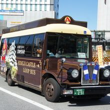 姫路城は姫路駅から見えているのですが、実際に歩くと20分くらいかかるので、少なくとも行きは何か交通機関を使った方がいい。ということで、バスセンターから出る城周辺観光ループバス(一回100円、一日乗車券300円)がお勧めです。なお、姫路城・好古園・姫路文学館・市立美術館の入館料が一日乗車券の提示で2割引となります。
