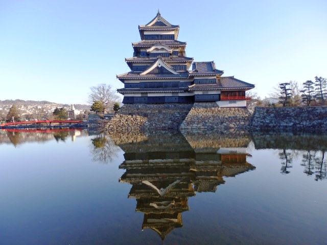 堀に映る本丸の姿が美しい国宝松本城(まつもとじょう)