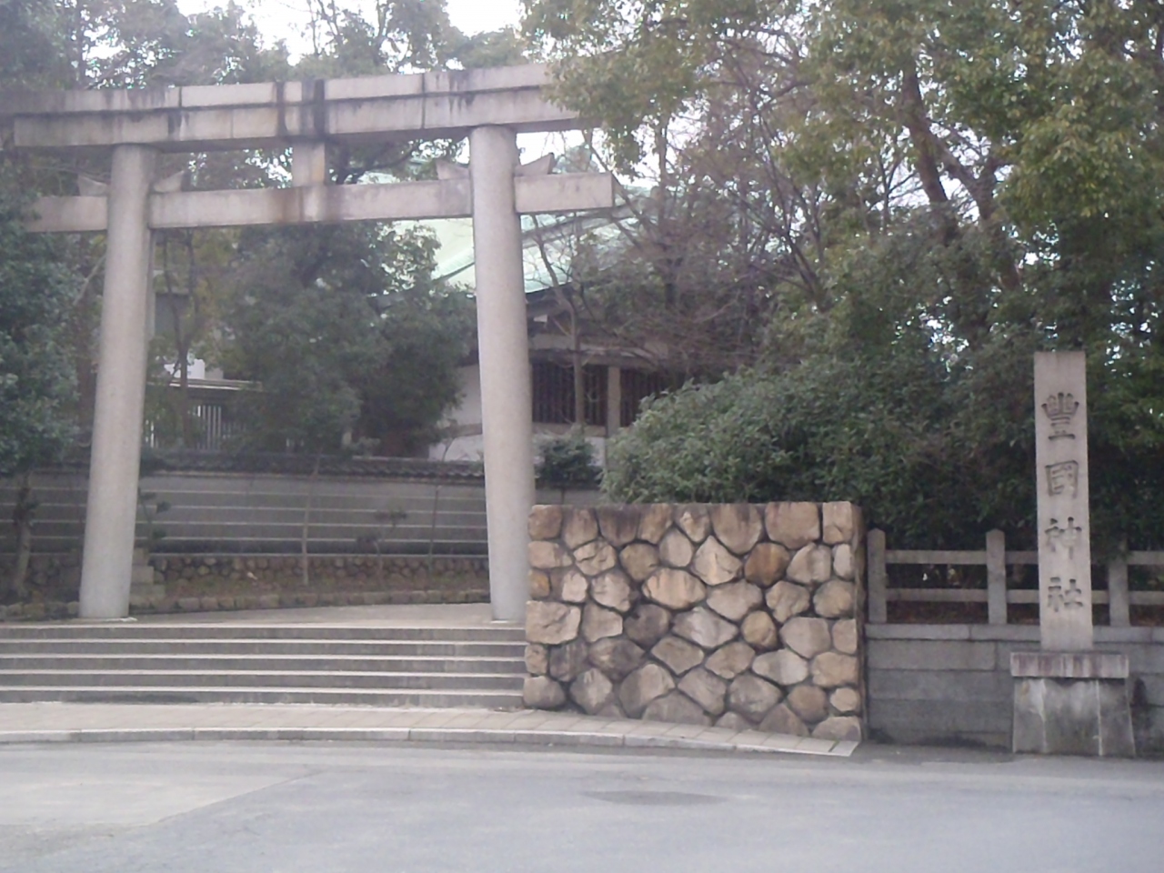 JR大阪環状線大阪城公園駅から向かうには大阪城公園内太陽の広場や大阪城ホールの横を通り、北外濠と東外濠の間を通って桜門へ、その向かい側にあるのが豊国神社です。