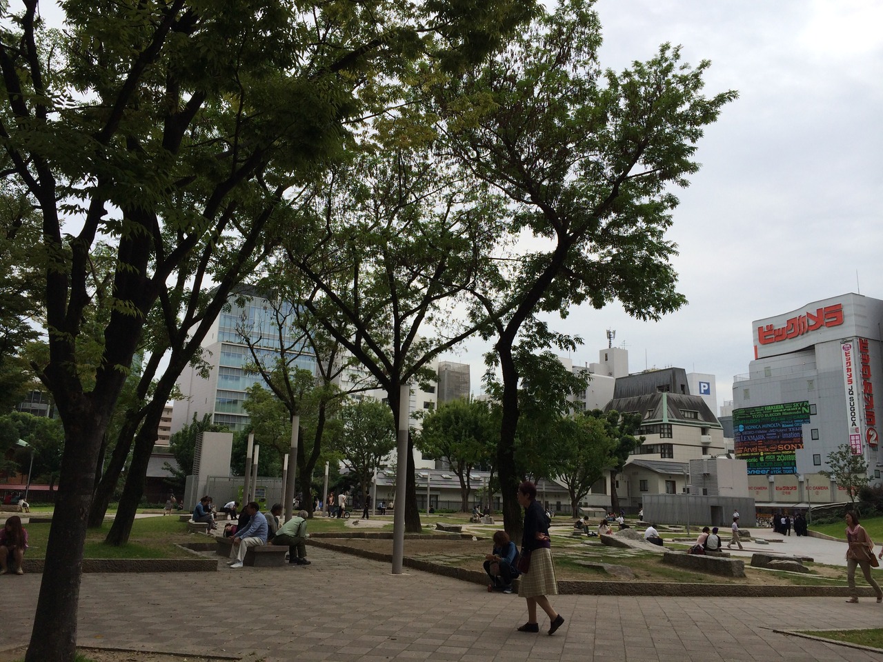 平日の昼間に通りかかったところ、木陰やベンチなどに腰を下ろしてゆっくりしている人がたくさんいました。