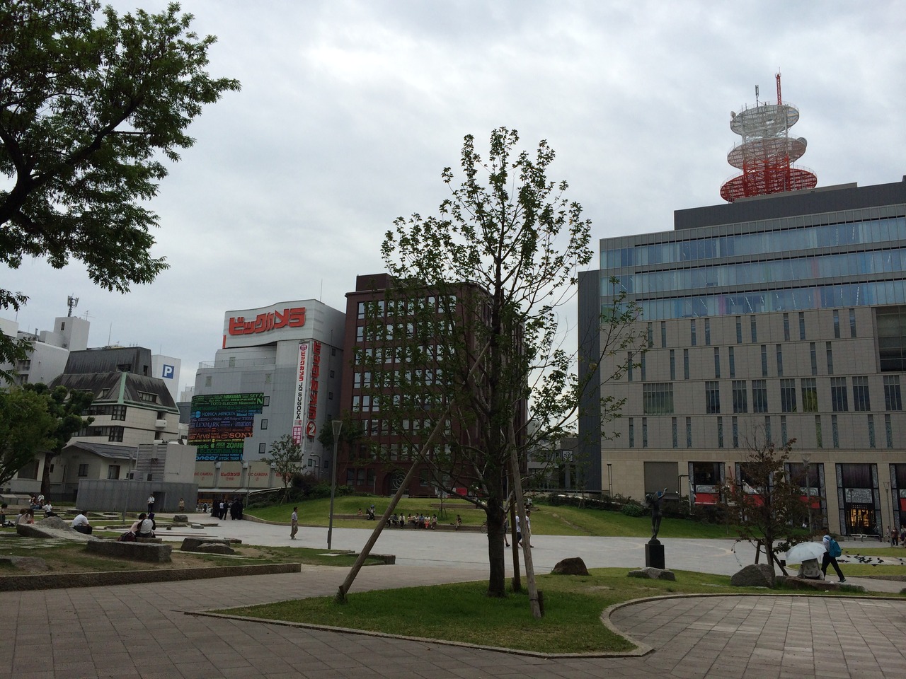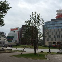 西鉄福岡駅や三越百貨店のビルのすぐ西隣に位置しています。