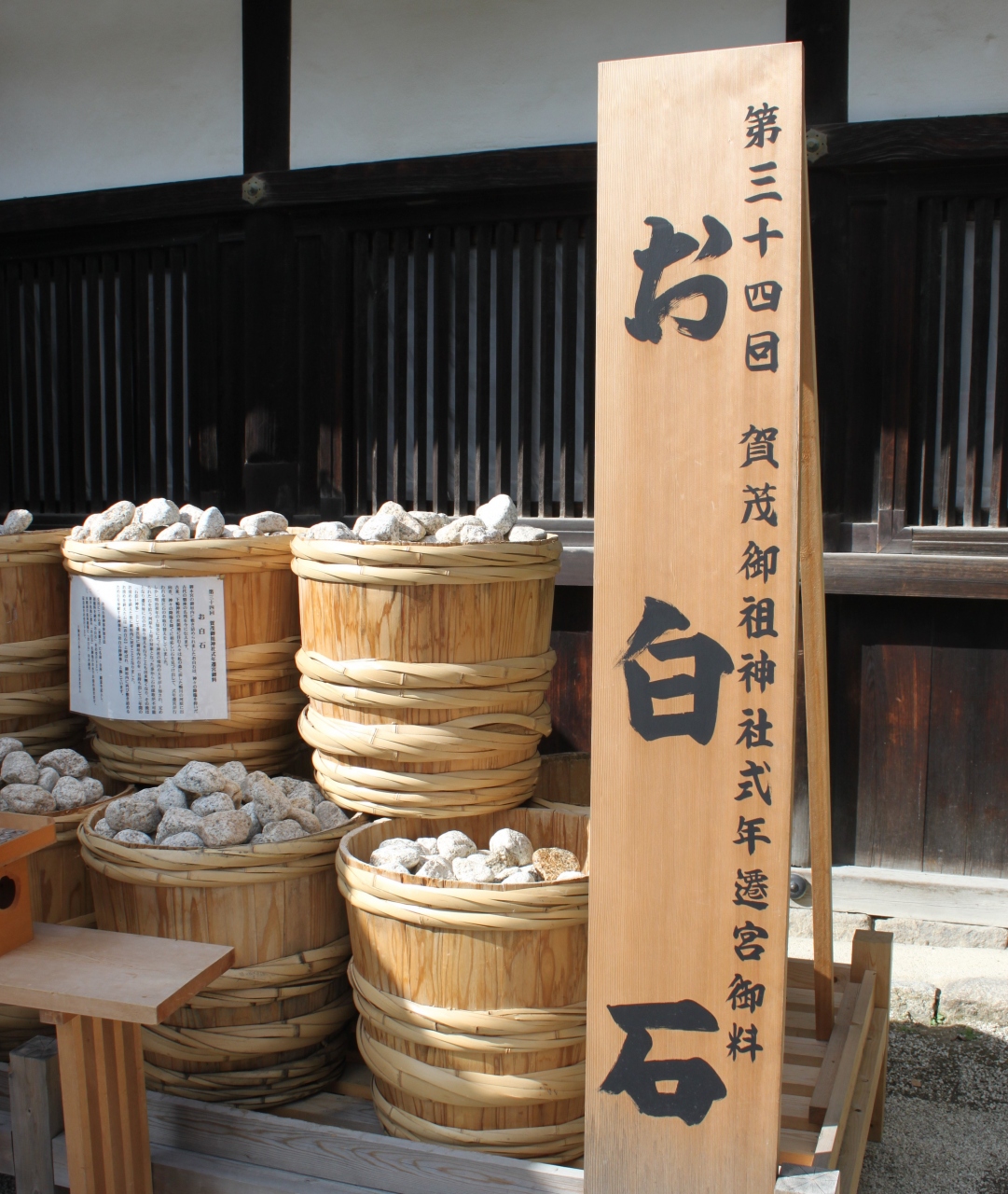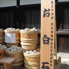 石を選び、御手洗池で洗い清め、樽に納めます。
