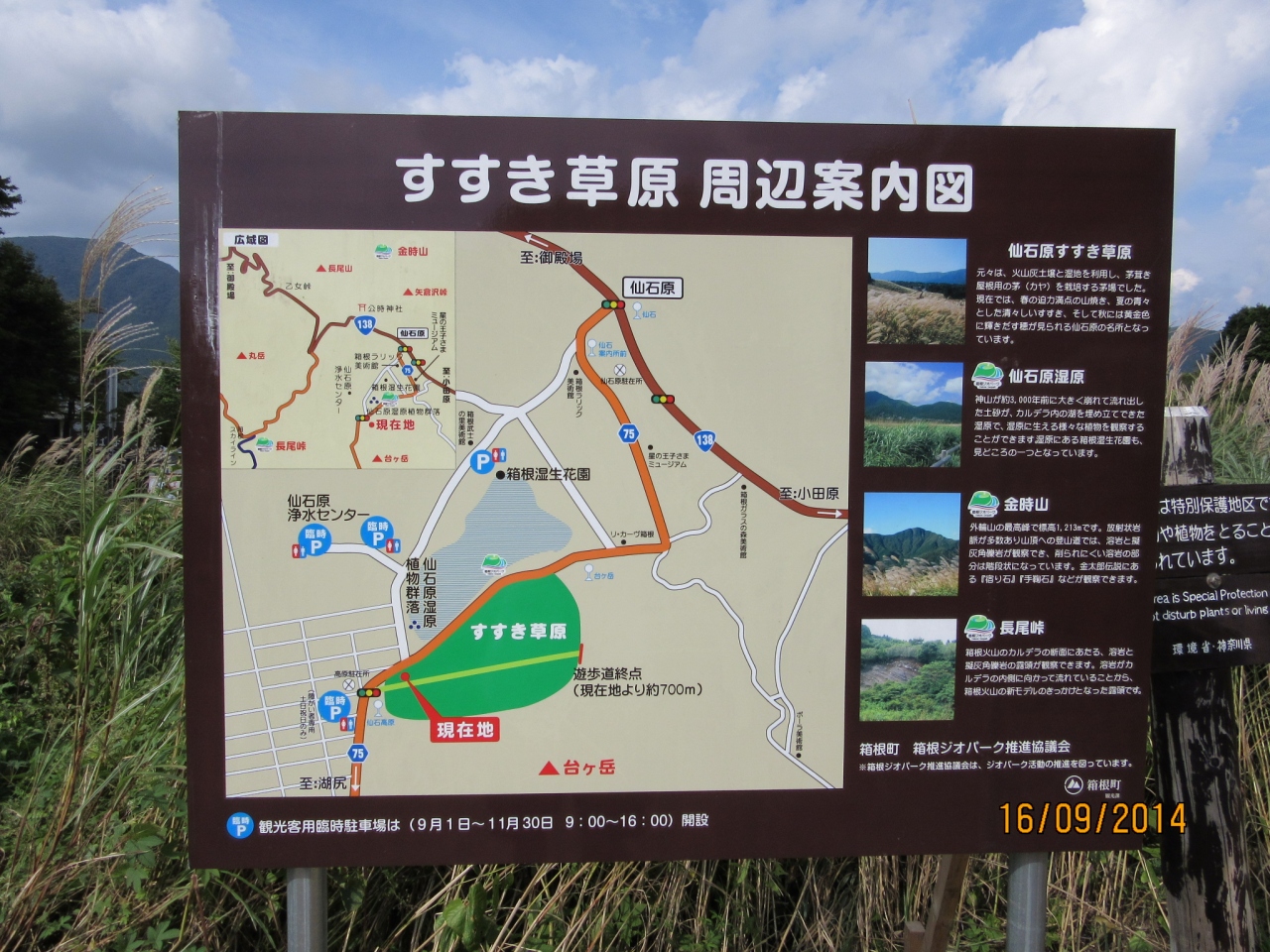 神奈川の景勝50選に選ばれている名所。小田原か湯本からバス(1時間に4、5本)で約1時間の【仙石高原】下車し少し戻ると雄大なススキの原の入り口に出る。