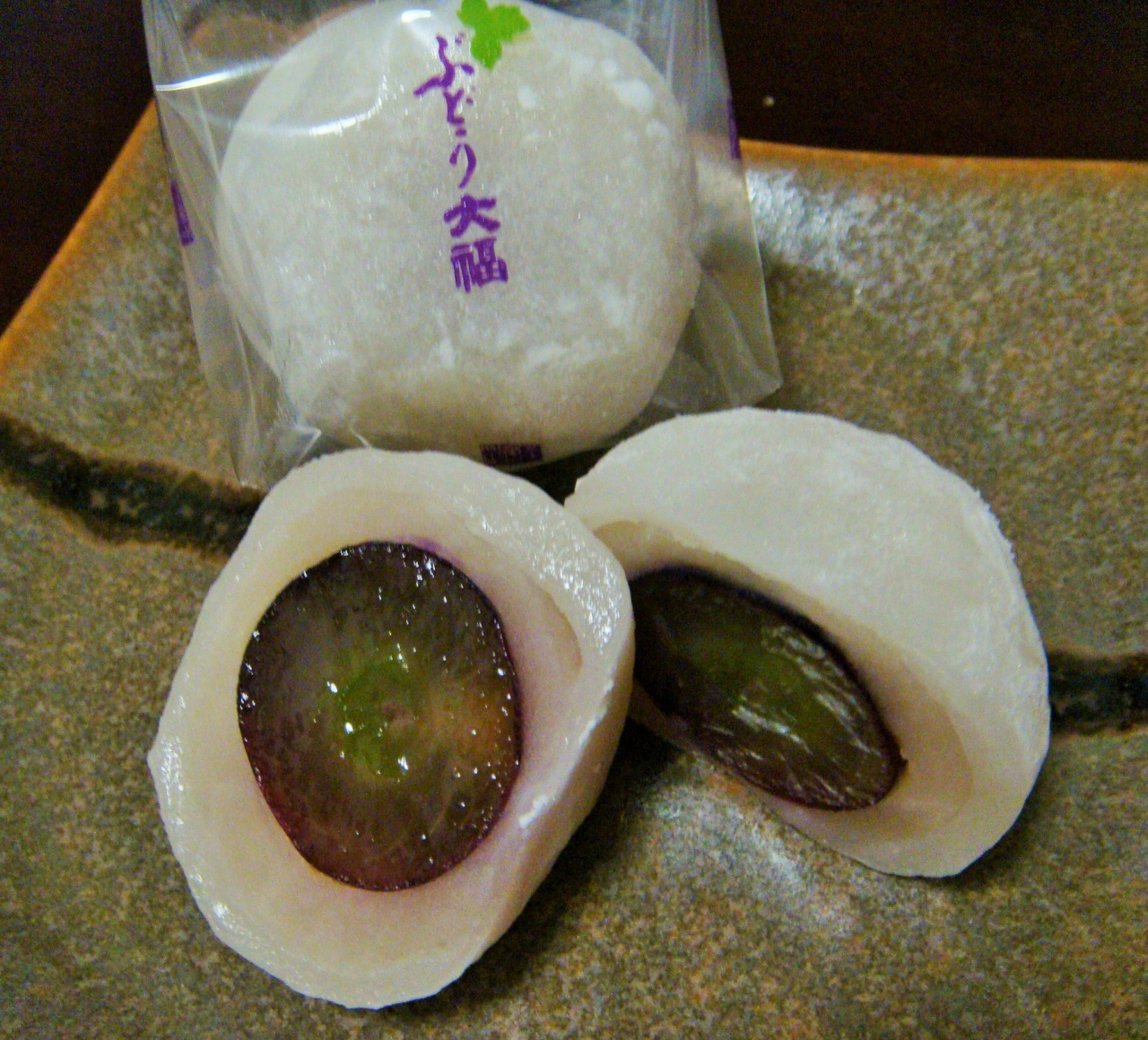 種無しぶどうの王様ピオーネを丸ごと柔らかいお餅で包んだ逸品。