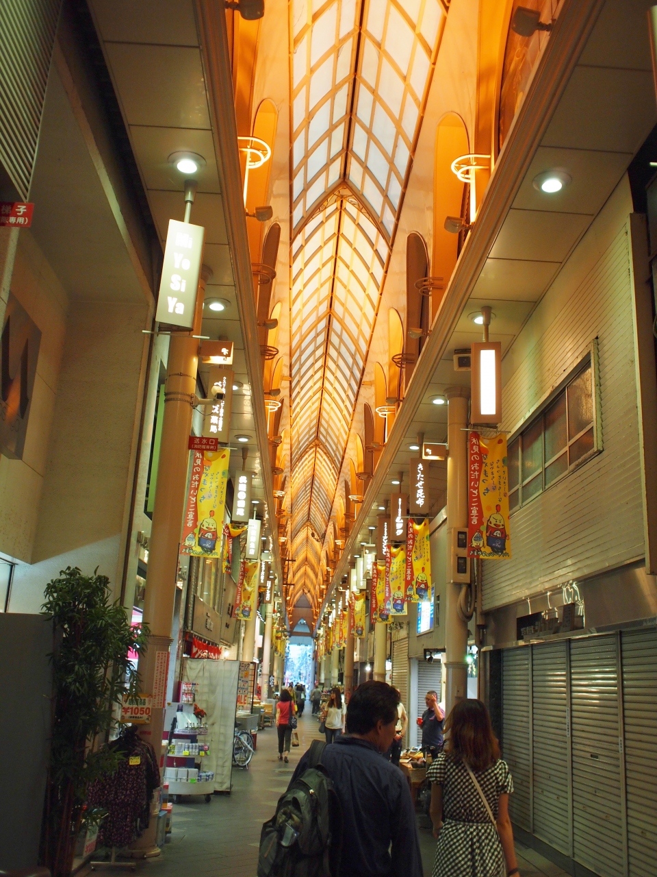 伏見の十石舟観光の帰りに立ち寄りました。京阪伏見桃山駅・近鉄桃山御陵前駅という2つの駅前にある、とても大きな商店街で、アーケードもあって賑やかな感じです。私達が訪れたときには、シャッターが閉まっている店もありましたが、それでも近所の商店街よりは断然賑わっているなと思いました。