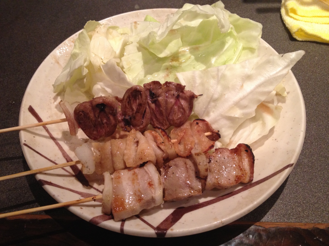 キャベツに酢をかけて焼き鳥をおくスタイルの発祥とのことです。