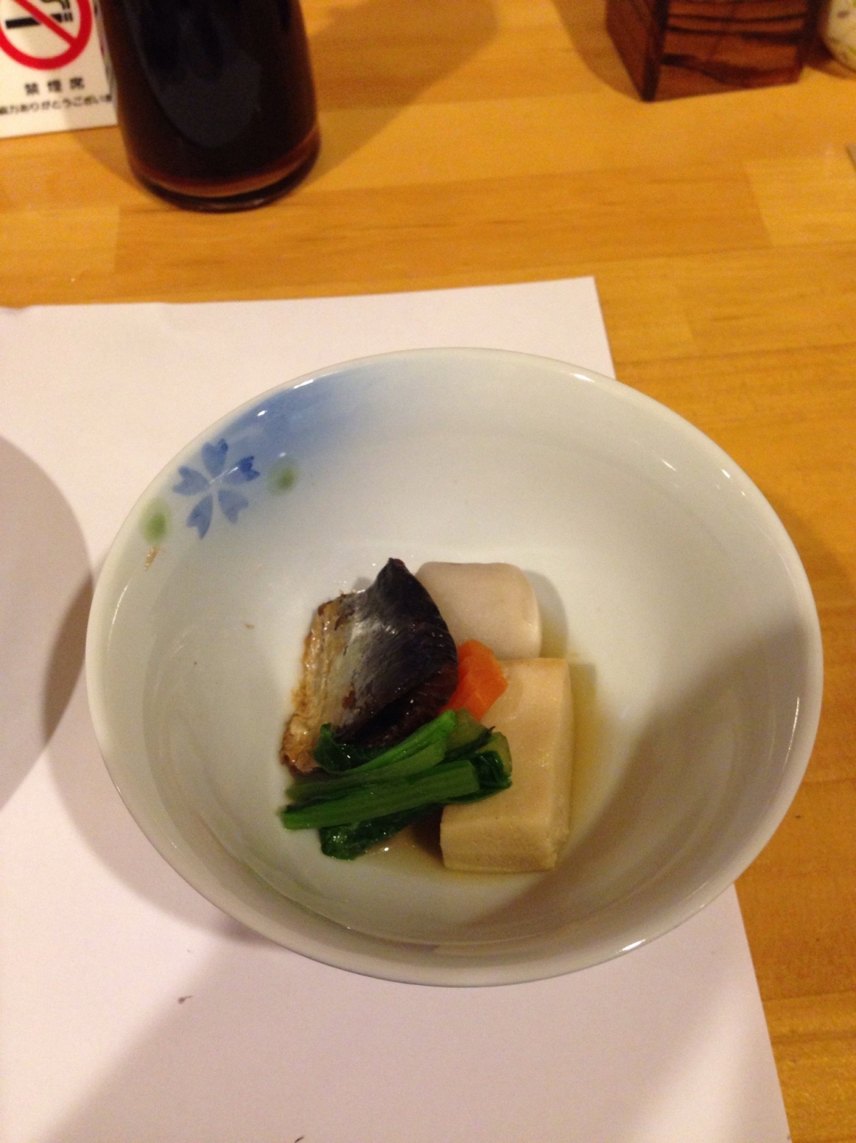 居酒屋?かと思ったが コース料理の本日の1品は ニシンと季節野菜の炊き合わせ と お上品でちょっとびっくり。美味しかった。