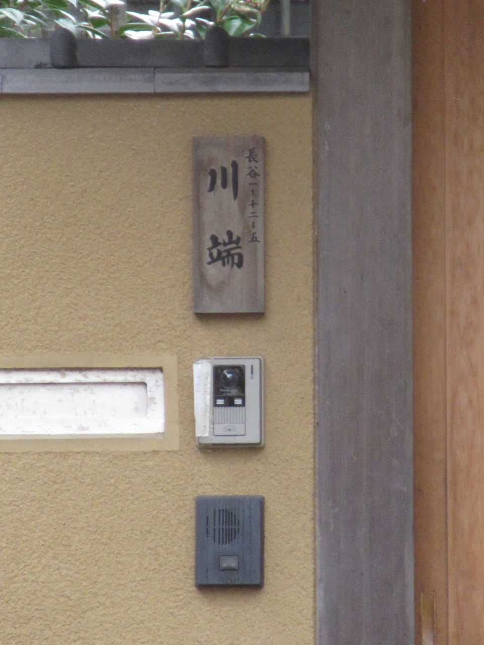長谷1丁目12−5、ネット情報によれば公益財団法人川端康成記念館とあります。甘縄神明宮の鳥居前あたり、案内標識らしきもの見当たりません。