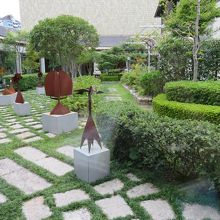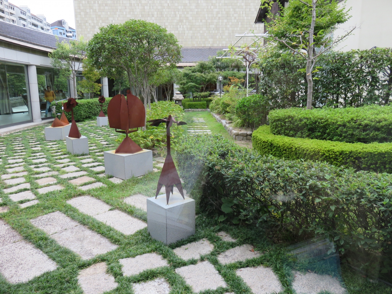美術館のエントランスや中庭にも、彼の自然のエネルギーで動く彫刻展示されていて