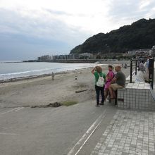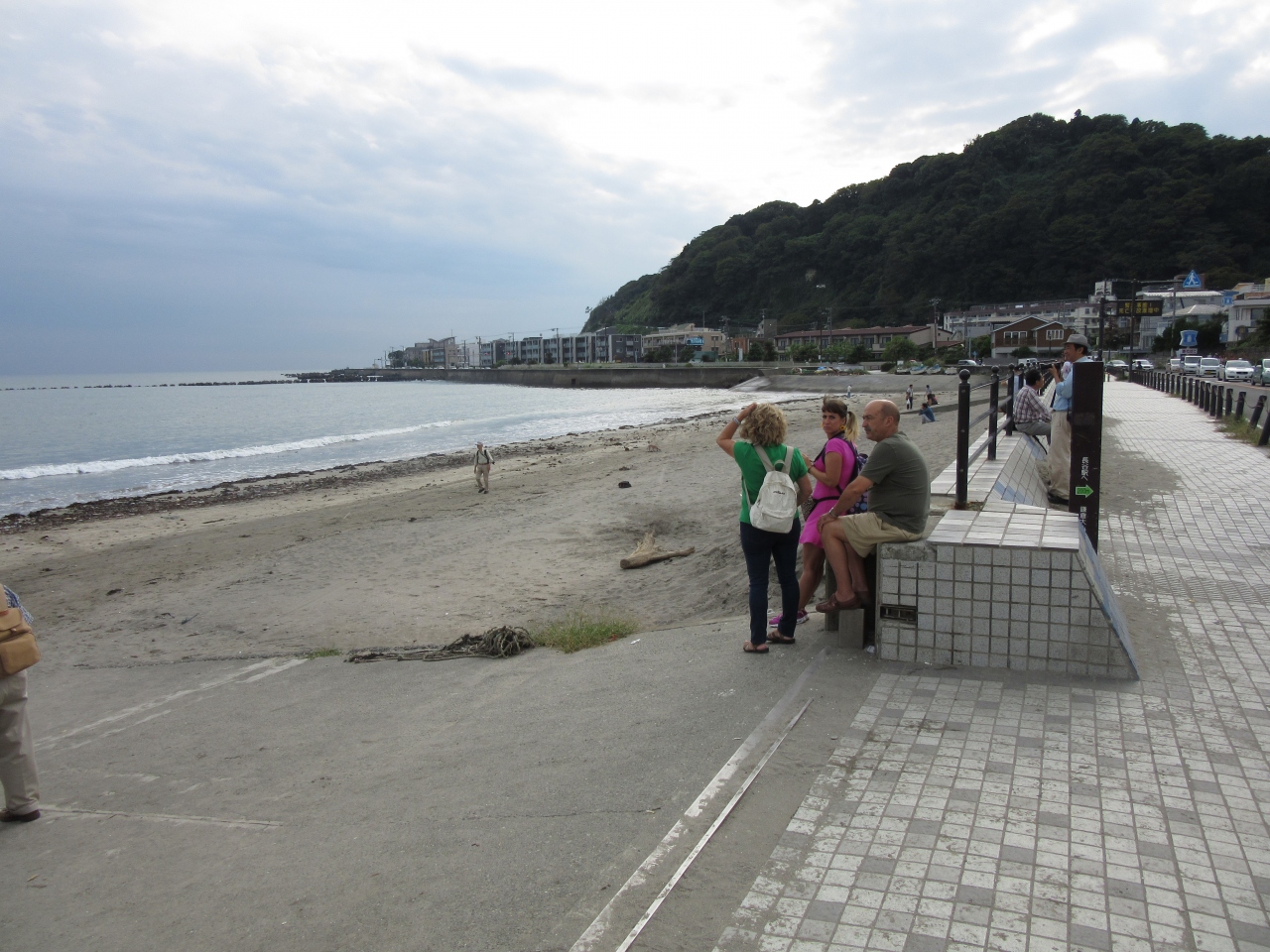 鎌倉海浜公園の坂ノ下地区、由比ガ浜と稲村ヶ崎の間エリアで市営ブールのあるあたりです。夏は海水浴で賑わいます。かってはノリなどが干してのどかな漁浜の風景がありましたが、今はサーファーなどレジャー化しています。道路側は稲村ヶ崎に向かう歩道(遊歩道)が整備されて散策したり海を眺めたりのスポットです。