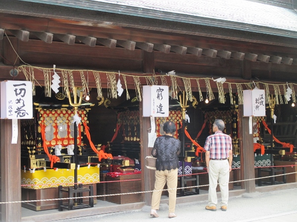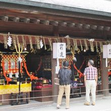 御祭神は応神天皇(おうじんてんのう)[八幡大神]、神功皇后(じんぐうこうごう)[応神天皇の母君]、玉依姫命(たまよりひめのみこと) [海の神・神武天皇(じんむてんのう)の母君]
