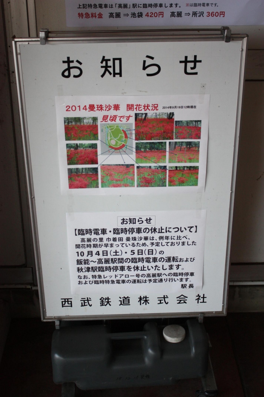 曼珠沙華の時期なので電車から掃きだされる人が半端なく多い。そして大部分の人がトイレに直行したり、パンフレット貰ったり帰りの特急を予約する人で動線が滅茶苦茶です。小さなお子様や年輩の方は 電車が到着したら気を付けて下さい。この時期は特別ダイヤで運行中です。また、周辺にゆっくりと食事ができる場所がありません。もともと、食事する場所が少ないので。