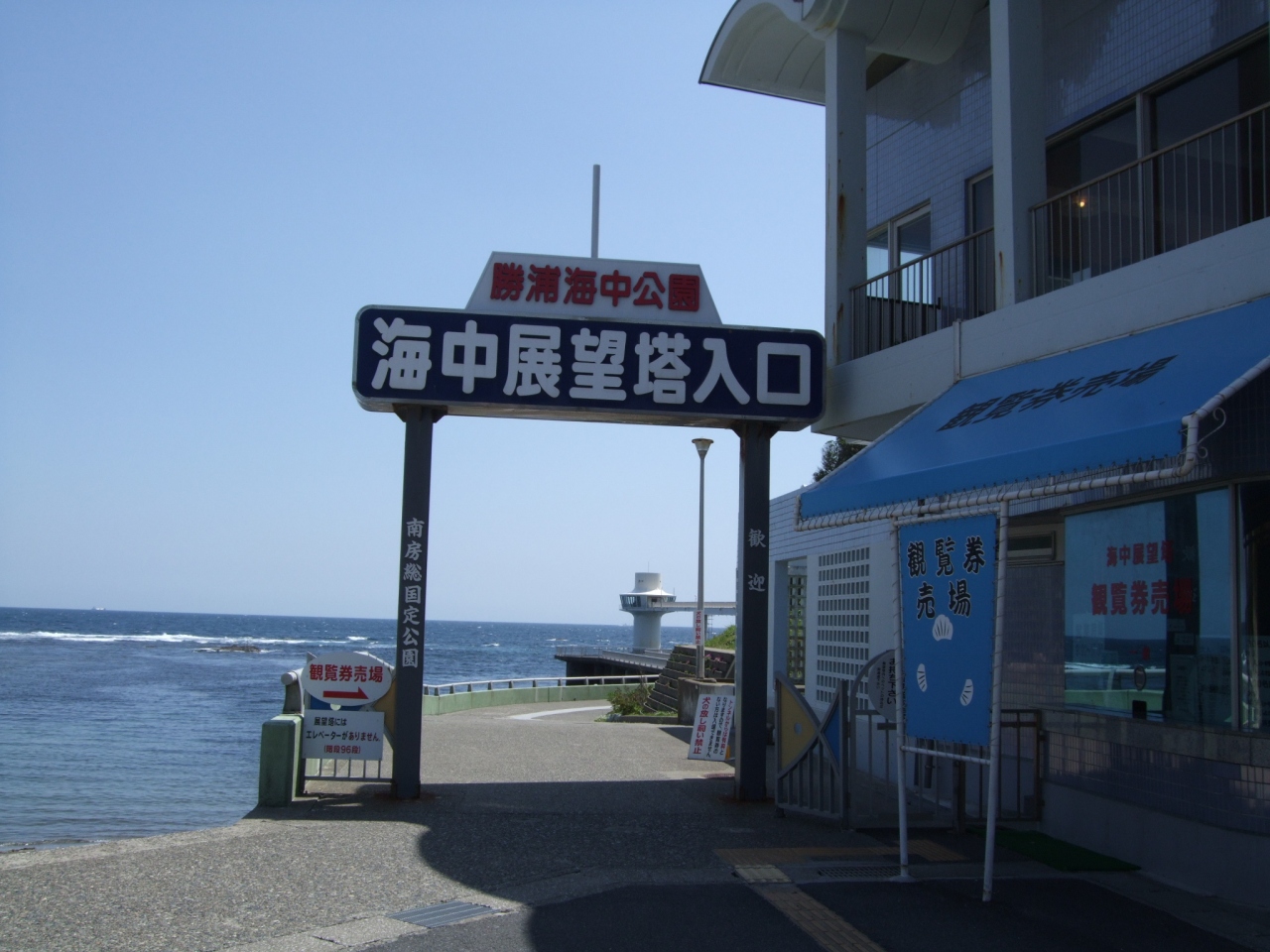 「海の博物館」に車を駐車し、徒歩で海中展望塔へ向かいます。海岸線の窓口で料金を支払い(HPでWEB割引のクーポンが有り)、外洋に突き出した歩道を歩きます。展望塔までの景色もとても良いです。展望塔のらせん階段を降りると、そこは自然の海中。いろんな魚たちが自由に泳いでいます。水族館と違って、どの窓からも見える訳ではありませんが、運がよければ伊勢海老やウツボも見れるようです。