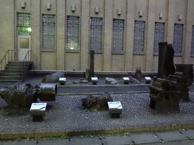 重厚感のある建物の前には、各種の展示物も置かれ、公園散策中にも目にすることが出来ます。歴史の重みを感じる光景です。