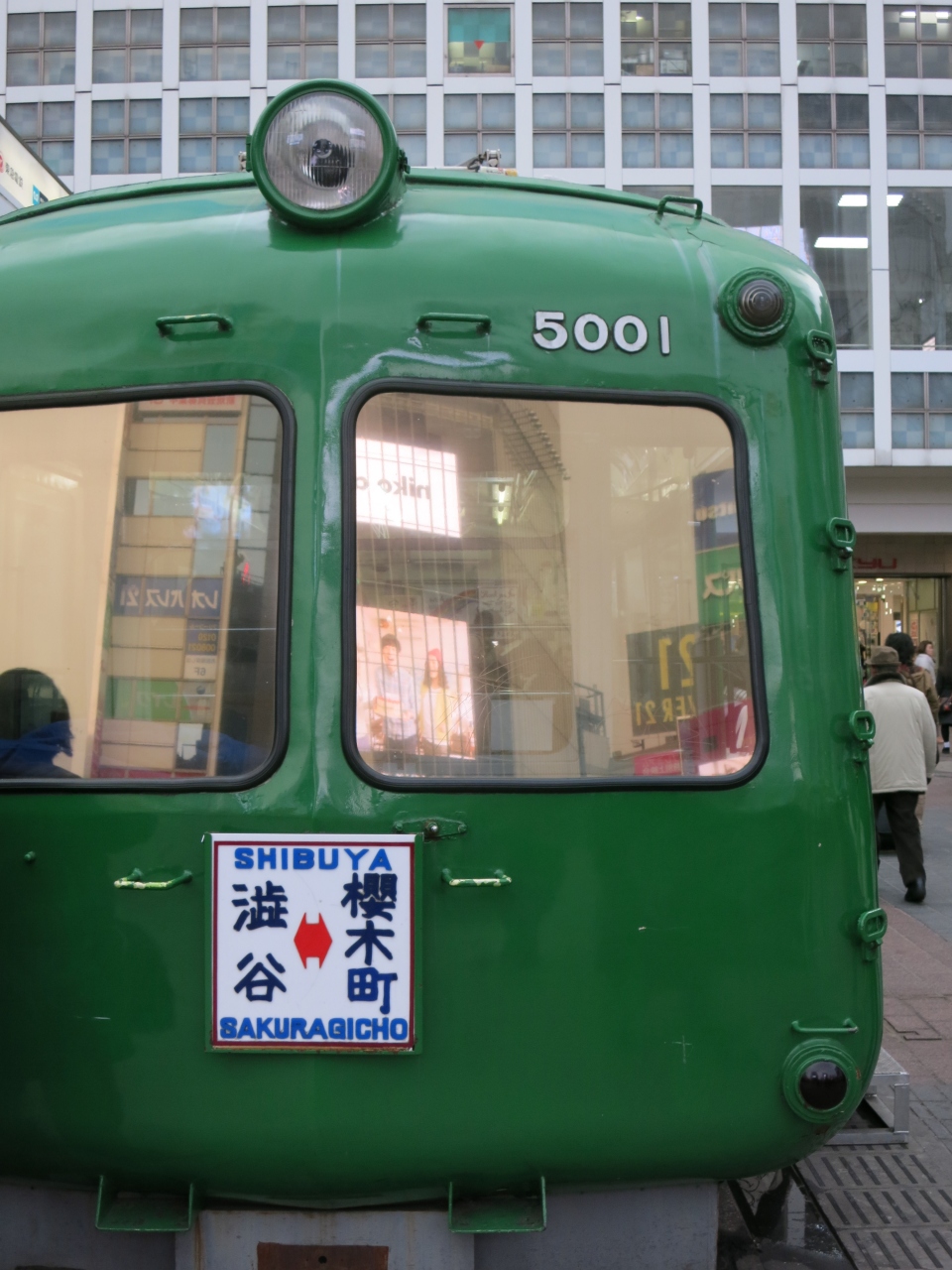 渋谷駅 ハチ公口の地下入口階段の横のかつて東横線を走った5000形車両(通称:青ガエル)が置かれ観光案内所になっています。昭和40年代にこの車両に乗っていた私には非常に懐かしく一枚扉のドア等、しみじみと見入ってしまいました。