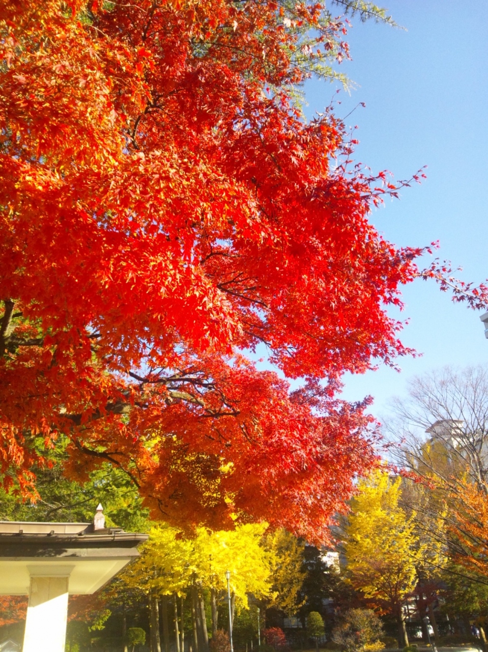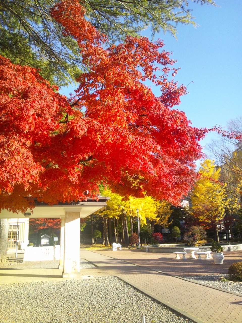 あさ、ホテルから歩いているとありました、諏訪湖の近くで、たまたまあった紅葉。