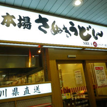 南武線の武蔵小杉駅の改札の前にある、セルフのうどん店。最近は、立ち食いソバ店ではなくこのようなうどん店を駅構内に見かけるようになった。東急東横線の乗り換え時に急いで食事をするときなどに便利な店舗である。
