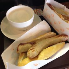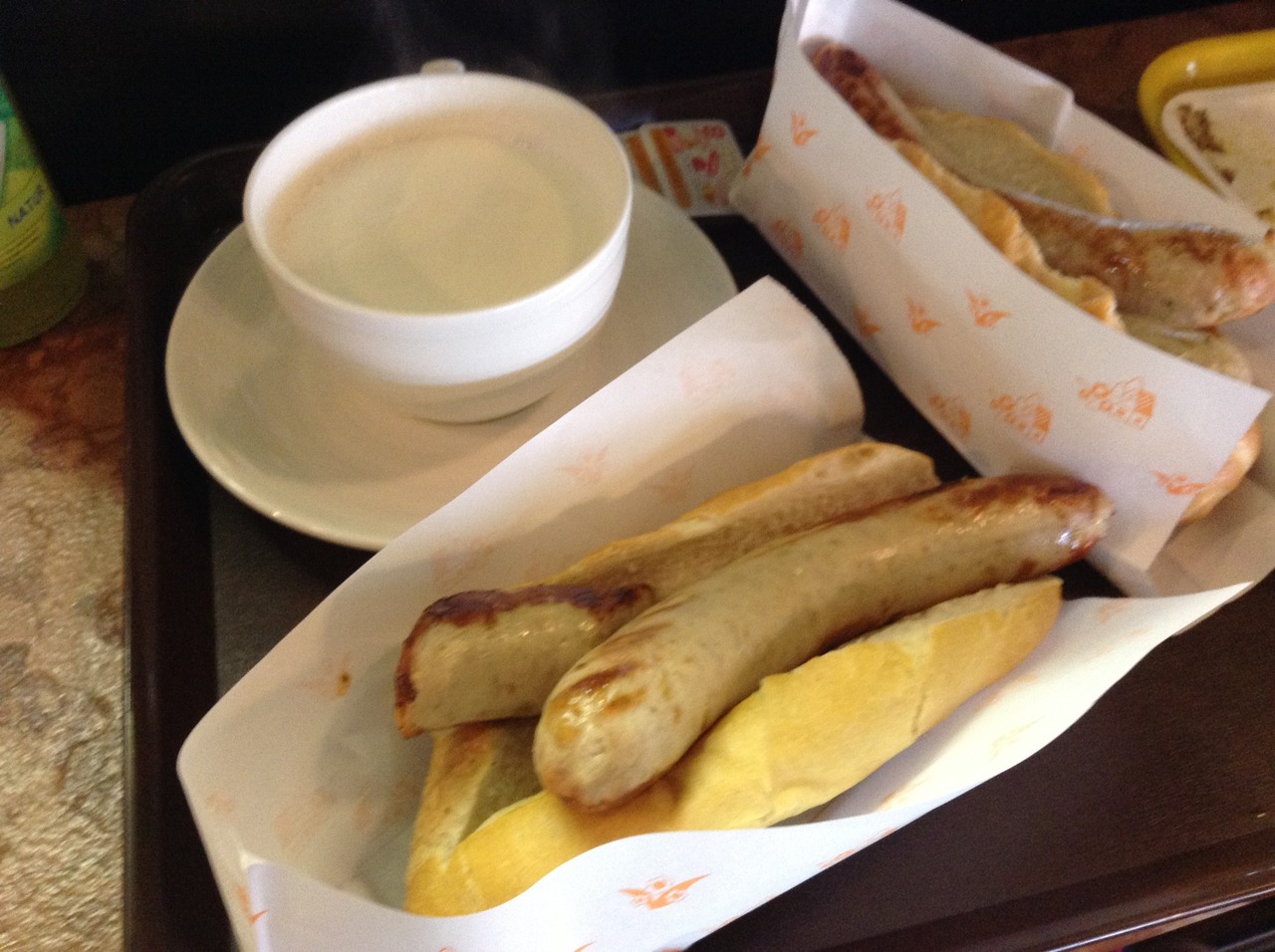 ホットドッグは、歯応えのあるパンに太いソーセージが挟んであり、ボリュームがあります。