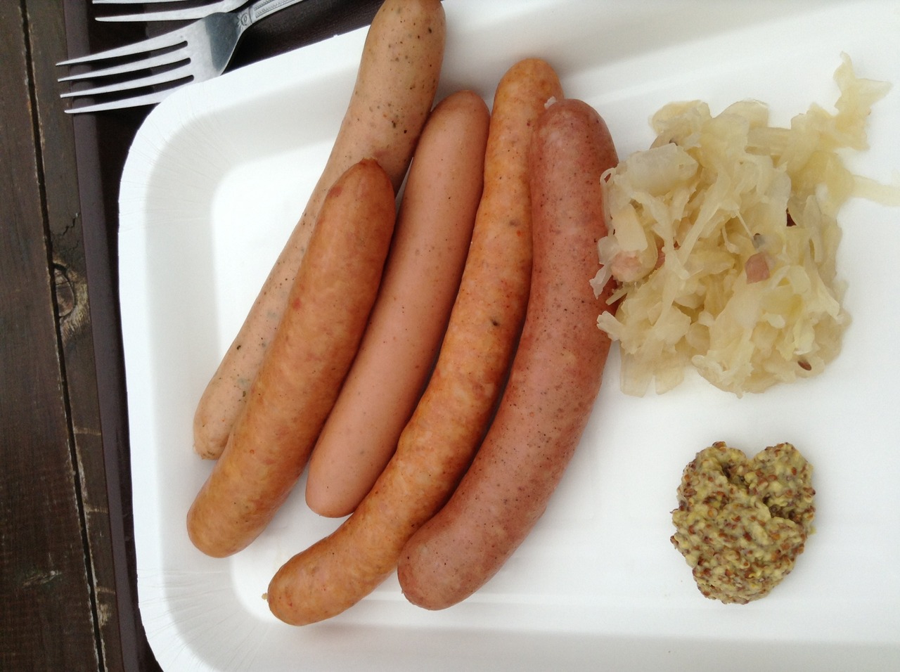 ホットドッグ520円、ソーセージ盛り840円、ドイツのビール750円を注文。