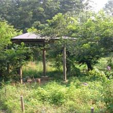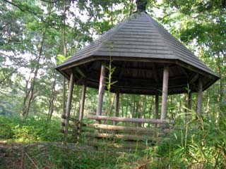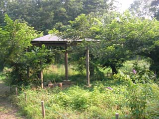 二瀬から台地の上に向かう道に入ると斜面に蝶の里公園があり、森の中に遊歩道が続いています。途中に東屋があり黒い蝶が飛んでいますが、夏場は薮蚊が寄ってきます。道路の反対側にも公園が続いていて、流れに沿って下っていくと、水辺の湿地がホタルの里になっていました。