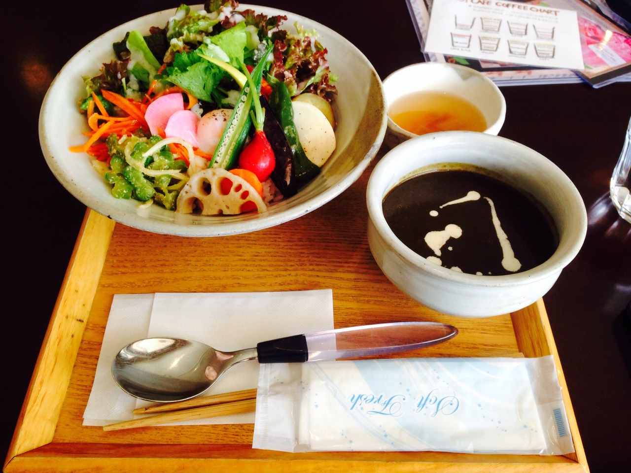 宇都宮にある人気のカフェです。休日の昼時は行列で並ぶことになります。メニューは野菜たっぷりのランチプレートや丼物やカレーです。野菜でお腹が膨らみます。デザートも美味しそうでした。お水はレモン水になっていて、各自セルフサービスで取ってくるシステムです。