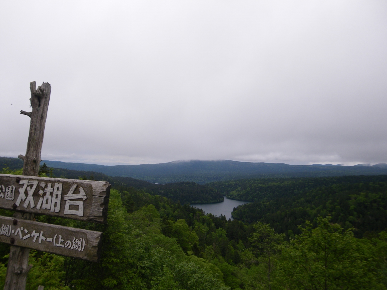 看板の横には丸太がありそれに登って写真を撮りましたが↑の湖はちょっとしかみえませんでした。