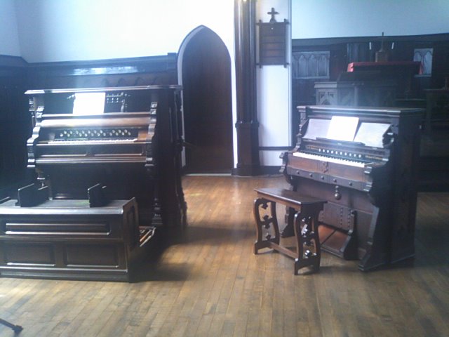 明治村の正門がある1丁目エリア、一番南西の区画に威風堂々と建っているのがこちらの教会建築です。近衛局本部や蔵持小学校が並ぶエリアからは森の小径と呼ばれるちょっとした遊歩道を経由して行きますが、いきなり立派な教会建築が現れて驚かされました。明治村内には幾つかの教会建築がありますが、スタンダードな美しさを感じるのにとても良い教会だと思います。