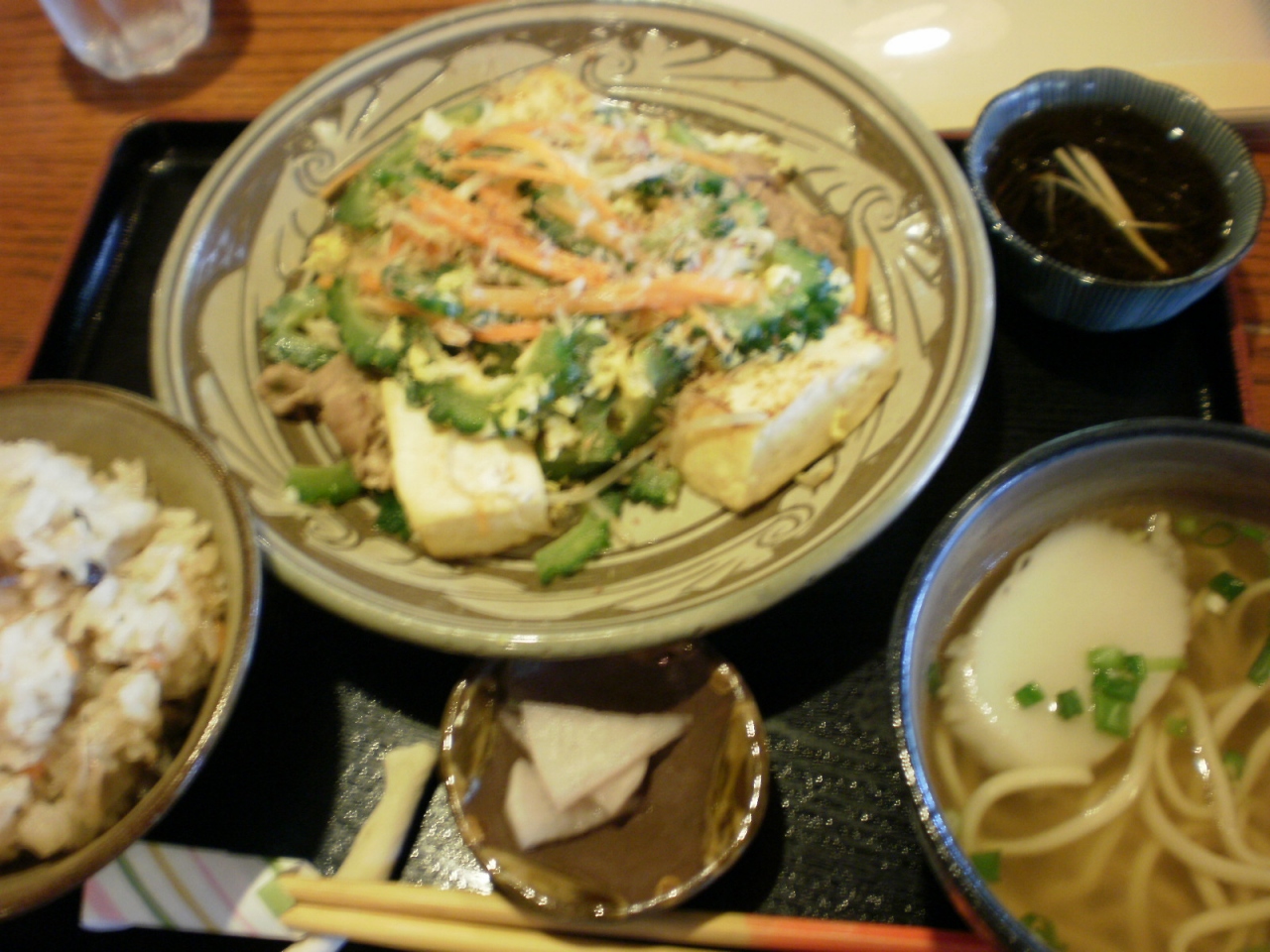 古民家を改装した食堂です。お昼時でしたが観光客で賑わっており少々待ちました。ゴーヤーちゃんぷる定食の沖縄ソーキそば付きでお腹いっぱい。風通しのよい素敵な古民家で、ゆっくりとした気分で食事ができました。また来たいお店です。