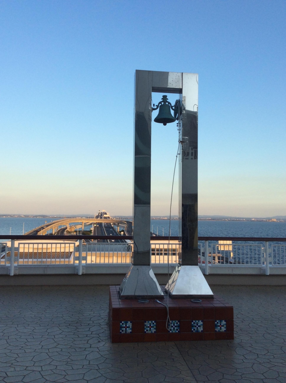 海ほたるパーキングエリアの4階にある幸せの鐘、平日の夕方に行きましたが、ちょうど夕陽が沈む時間のためか、夕陽の見えないこのエリアには誰もいませんでした。