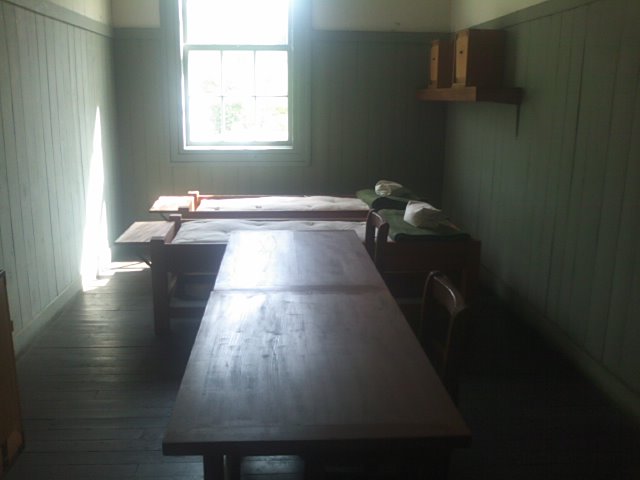 こちらの建物は明治村四丁目エリアの少し高台にあって、それなりの存在感を示しています。二階建の横長な建物の内部には小部屋が沢山あって、士官室や士官見習いの部屋などが、当時の姿で再現されているのが解り易くて良い展示だなと感じました。