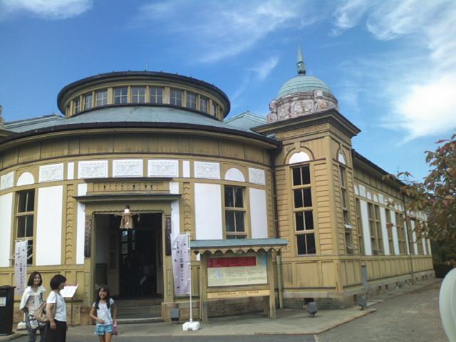 宇治山田郵便局のかつての局舎を移築展示している、明治村内でも屈指の美しさを誇る建築だと思います。ただこの建物はL字型の形状をしていて、立地的にも平坦な場所にあるため、このL字がビジュアル的に確認できるようなアングルでの撮影がなかなか困難だと思います。内部では郵便やポストの歴史などが紹介されていますが、実際の郵便局としての機能も有している窓口も設置されています。また、外には黒ポストも設置されていますが、こちらも現役で普通に郵便物を投函することも可能です。