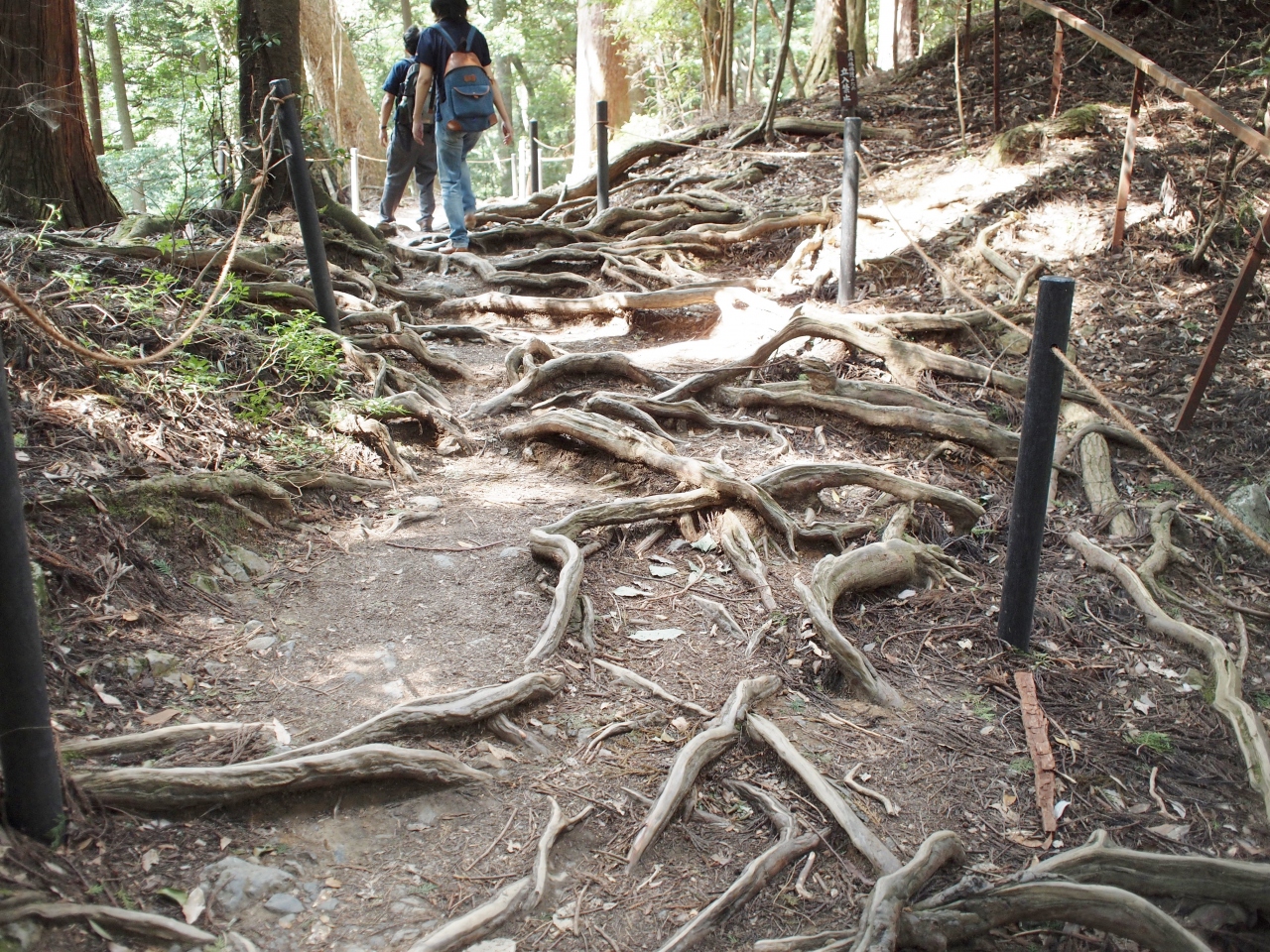 木の根道とは、鞍馬の奥の院でよく見られる、杉の根が露出した道のことです。初めて見たときは、杉の根がまるでたくさんの蛇のようで、びっくりしました。何度か見た後でも、少し人気のない(天狗が出そうな)鞍馬の山奥の神秘のエネルギーを象徴しているような感じがする、不思議な道です。