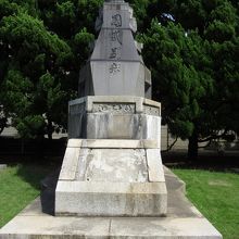 ヴェルニー公園のさくらの広場内にある石碑群(旧海軍・正岡子規)のひとつ、真ん中の位置にあたります。高さのある変わったオブジェの碑。これが國威顕彰の碑。横から見ると軍艦の艦橋のようです。正面下のプレートが剥がされた跡になったまま、これ見ていろいろ憶測よんでいるような状態はみなさん何思うのでしょうか。