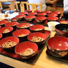 お店の人の話では12椀で蕎麦1人前、24椀で蕎麦2人前ということだったので、それぞれ12椀と24椀のセットを頼みましたが、思いのほかボリュームがあり、その1.5倍くらいはあると思いました。