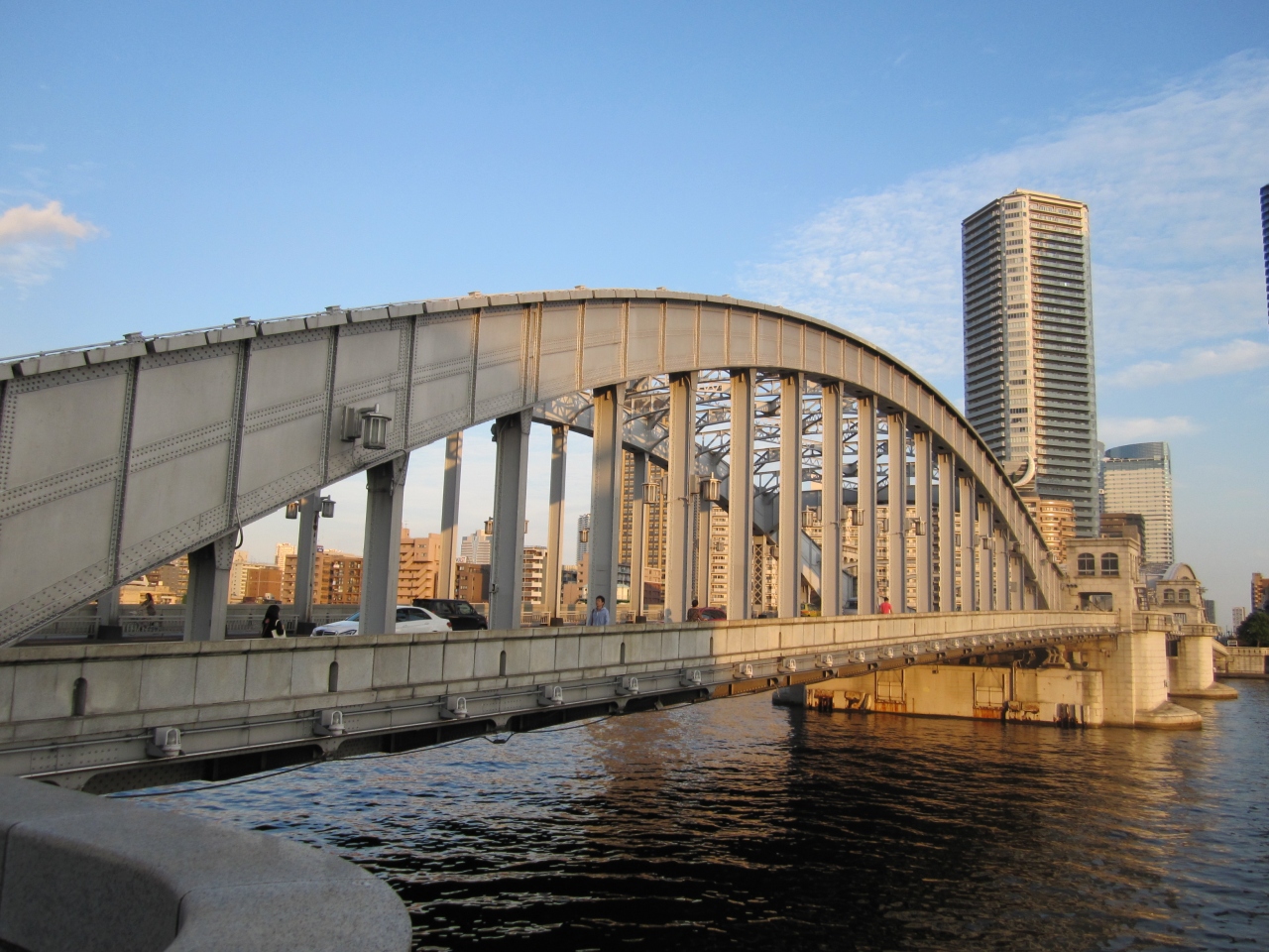 晴海方面から築地方面に歩いていきました。が、資料館は休業でした。今日は日曜日。月・水・日曜は開いてません、ご注意を。ただ、橋のたもとのちょっとした公園にある説明板を読むと、橋の成り立ちは多少はわかります。