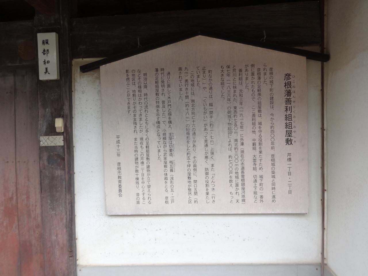 彦根城下の南部、外濠と芹川とに囲まれた地区にあります。彦根藩の足軽衆は、二十二俵三人扶持の禄高で城下を守る役割を果たしていました。