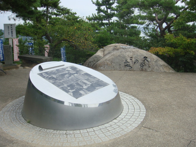 文学のこみちとは千光寺山頂から、途中千光寺敷地内を通り、千日稲荷まで続く全長約1km程のの遊歩道です。最初に出てくるのは徳富蘇峯の碑、続いて前田曙山(この辺はよく知りませんが)、続いての正岡子規からは志賀直哉などの尾道ゆかりの有名人が続きます。尾道水道を見渡しながらゆっくりと散策するにはよいでしょう。