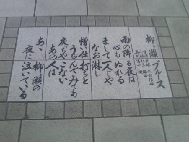 岐阜の繁華街として知られる柳ヶ瀬は、美川憲一の「柳ヶ瀬ブルース」で一躍有名になりましたが、この商店街を歩いていたら、地面に歌詞が刻まれているプレートが埋め込まれていて驚かされました。せっかくなら歌碑でも建てたら良いのに、とも思うのですが、こうした飾り気のなさもこの商店街の魅力の一つかもしれません。