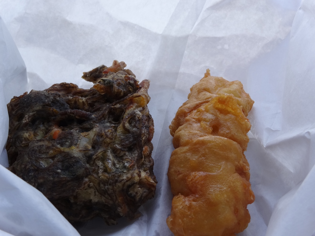 外にあるアイスクリーム屋さんと天ぷらやさんで買い物しました。
