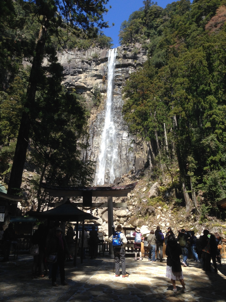 自然に囲まれた山中?に、この滝がありました。太陽の光が当たって、水しぶきが白く輝いていて、非常に神秘的でした。空気もきれいで、心が洗われるようでした。春前の晴天だったので、寒すぎず、暑すぎで丁度良かったです。