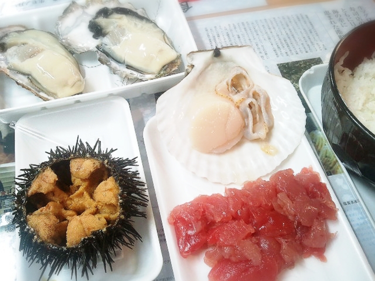 私はマグロのなかおち、ガゼウニ、ホタテを載せました。