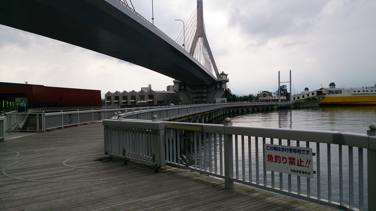 青森ラブリッジは八甲田丸やエーファクトリー方面と青い海公園やアスパム方面をつなぐ遊歩道橋で、こちらを通ると近道。