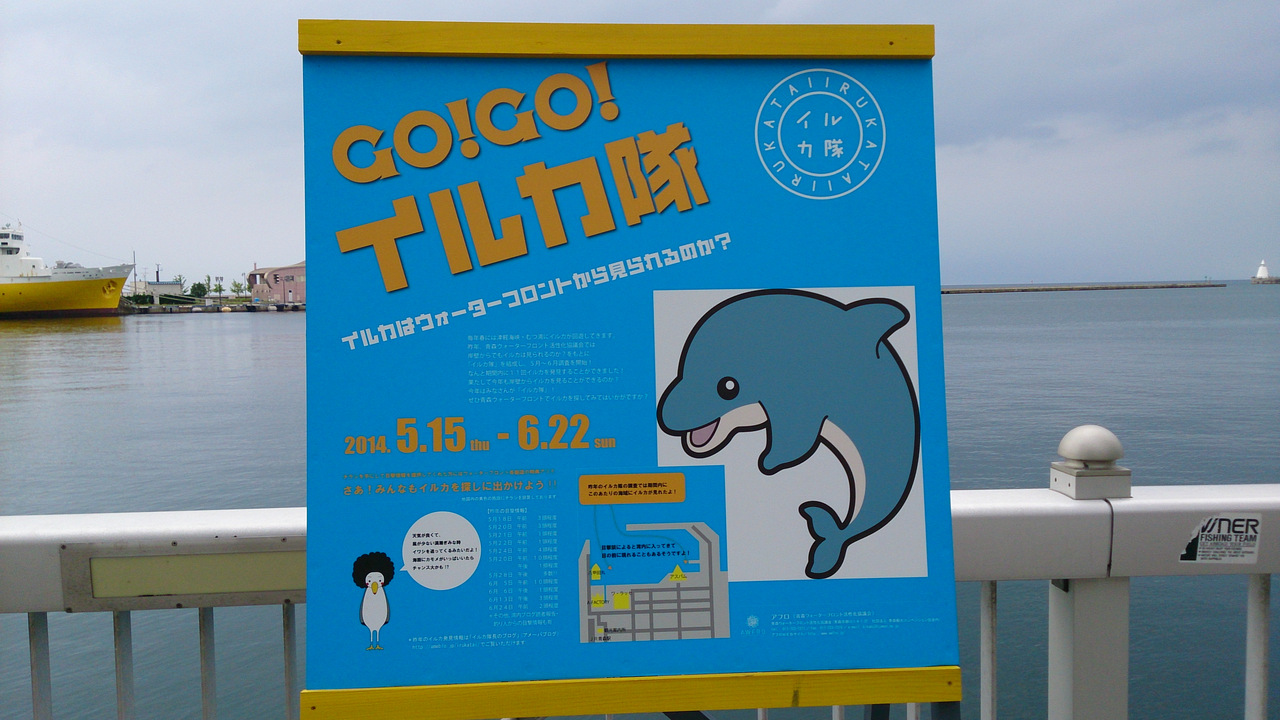 という看板が、青森ラブリッジにありましたが、実際にイルカの目撃情報もあるようでした。