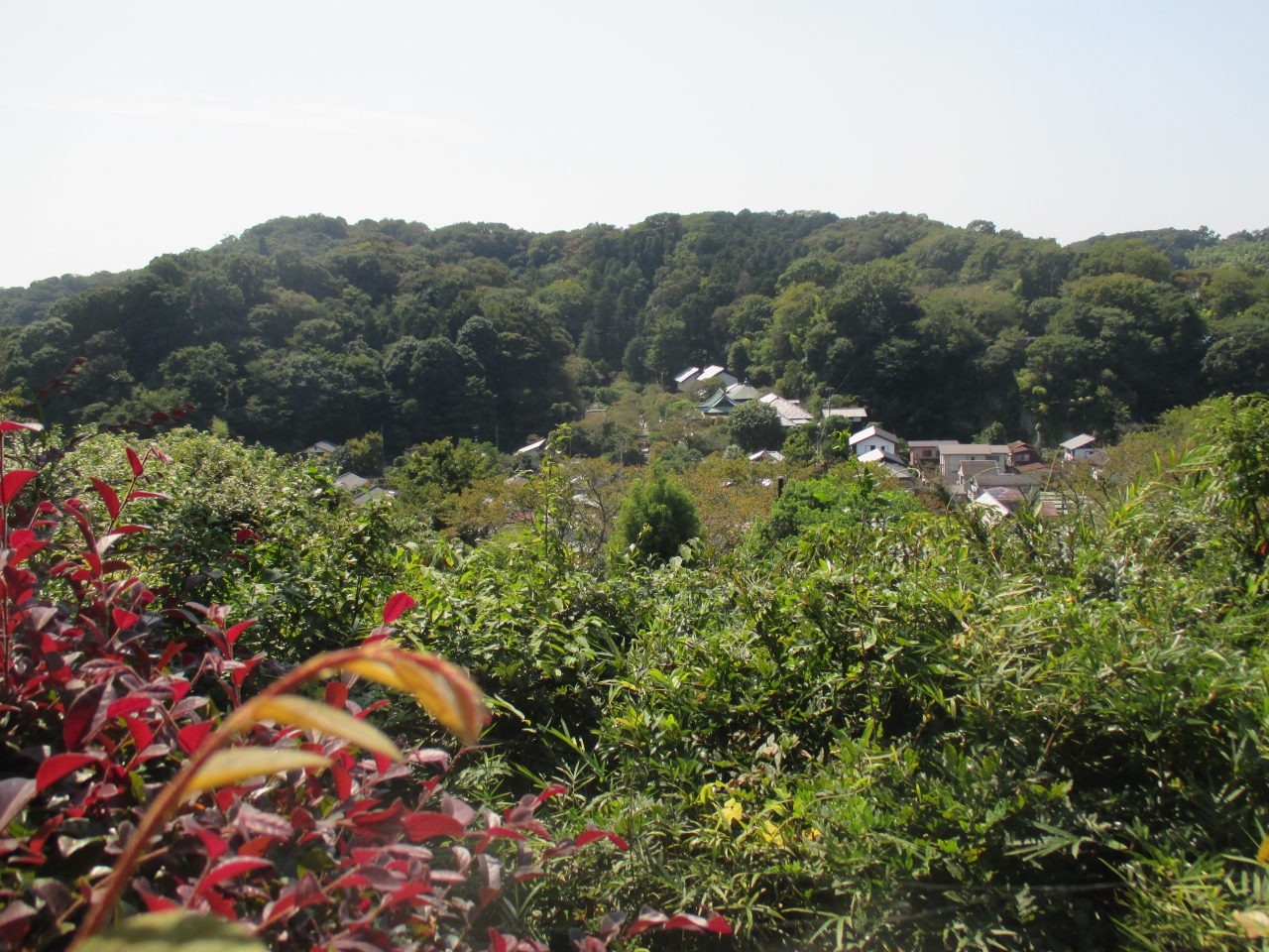 ここから、横須賀線の反対側にある東慶寺の境内が望めます。