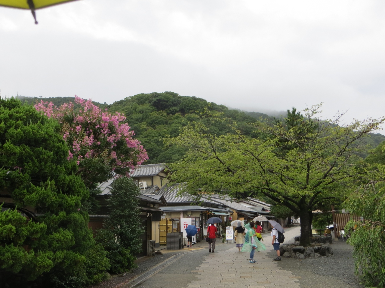 嵐山公園は観光客のみならず地元民にとっても憩いの場所です。中之島公園の桂川の川岸にはベンチが置かれていて夏の暑い時期にも涼しさが感じられほっとする場所です。8月ももうすぐ終わり、嵐山を借景に百日紅が綺麗に咲いていました。